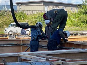 コンクリートを流しては急いで攪拌して、枠を乗り越えて、また攪拌してという作業はかなりの運動量だと思います。