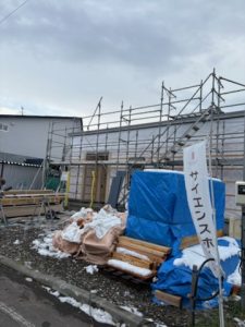 13時~15時の会議を終え、施工中の平屋