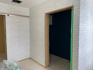 優しい色のアクセントクロスがあり、全体的に明るくなごむ印象です。